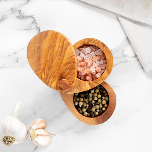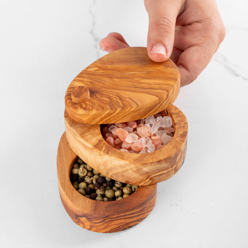 Handgefertigte Olivenholz-Salzbox mit Doppel-Schicht