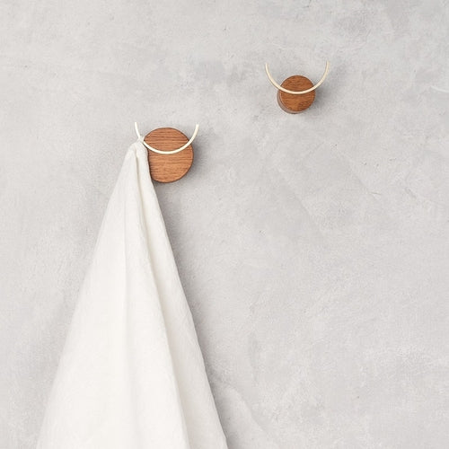 Wandhaken „Hirsch“ aus Eiche, Walnuss-Farbton & Messing – Multifunktional